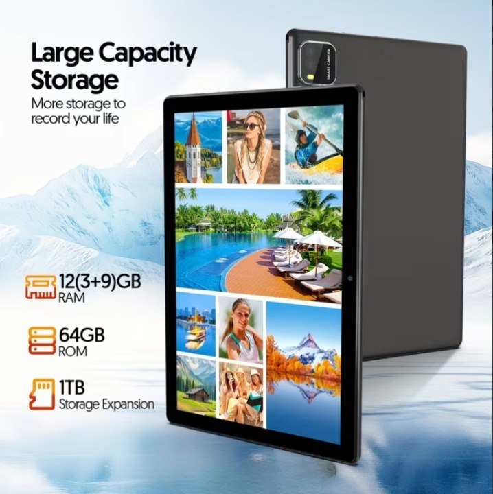 - 1 × 10-inch Android 15 tablet (3GB RAM + 9GB virtual memory, 64GB internal storage)